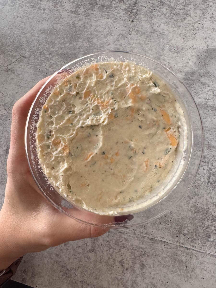 The flavor is creamy, tangy, and ranch-forward with salty hits of cheese. Personally, I found it more satisfying warm than cold-the cheese softens, the flavors blend better, and the bacon comes through more clearly.